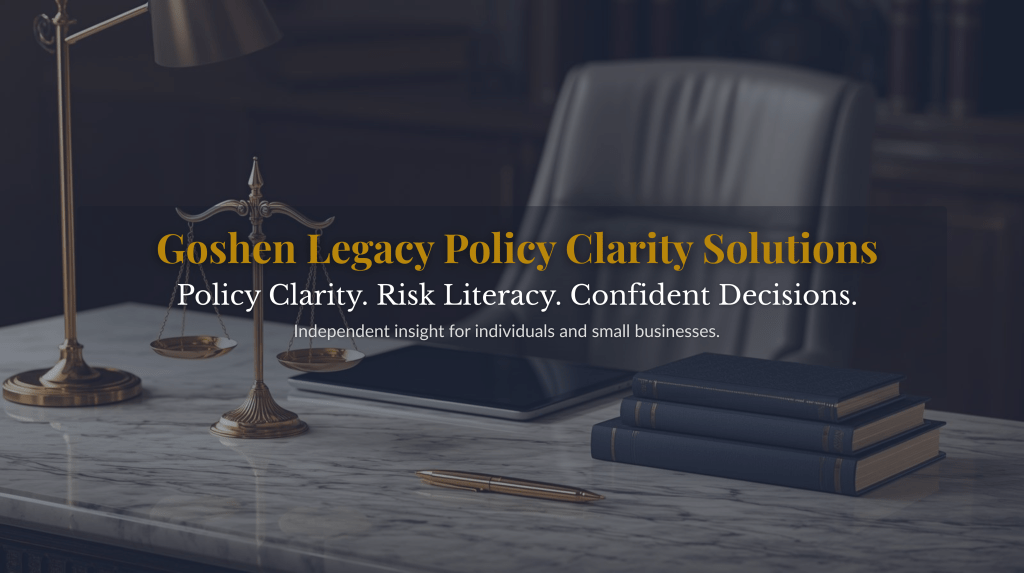 Most people do not discover coverage gaps until the moment they file a claim. By then, the damage is done and the cost is real. Goshen Legacy™ Policy Clarity Solutions provides independent insurance education that helps individuals and businesses understand their protection before a loss occurs.